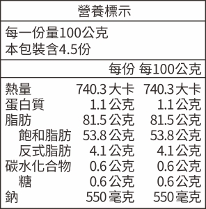 注意事項:本產品之反式脂肪來自於天然生乳,非氫化過程產生,請安心食用。